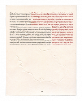 Within the framework of the project to date, the following have been created: a short reflective essay, a publication and a collage of ceramic tiles.